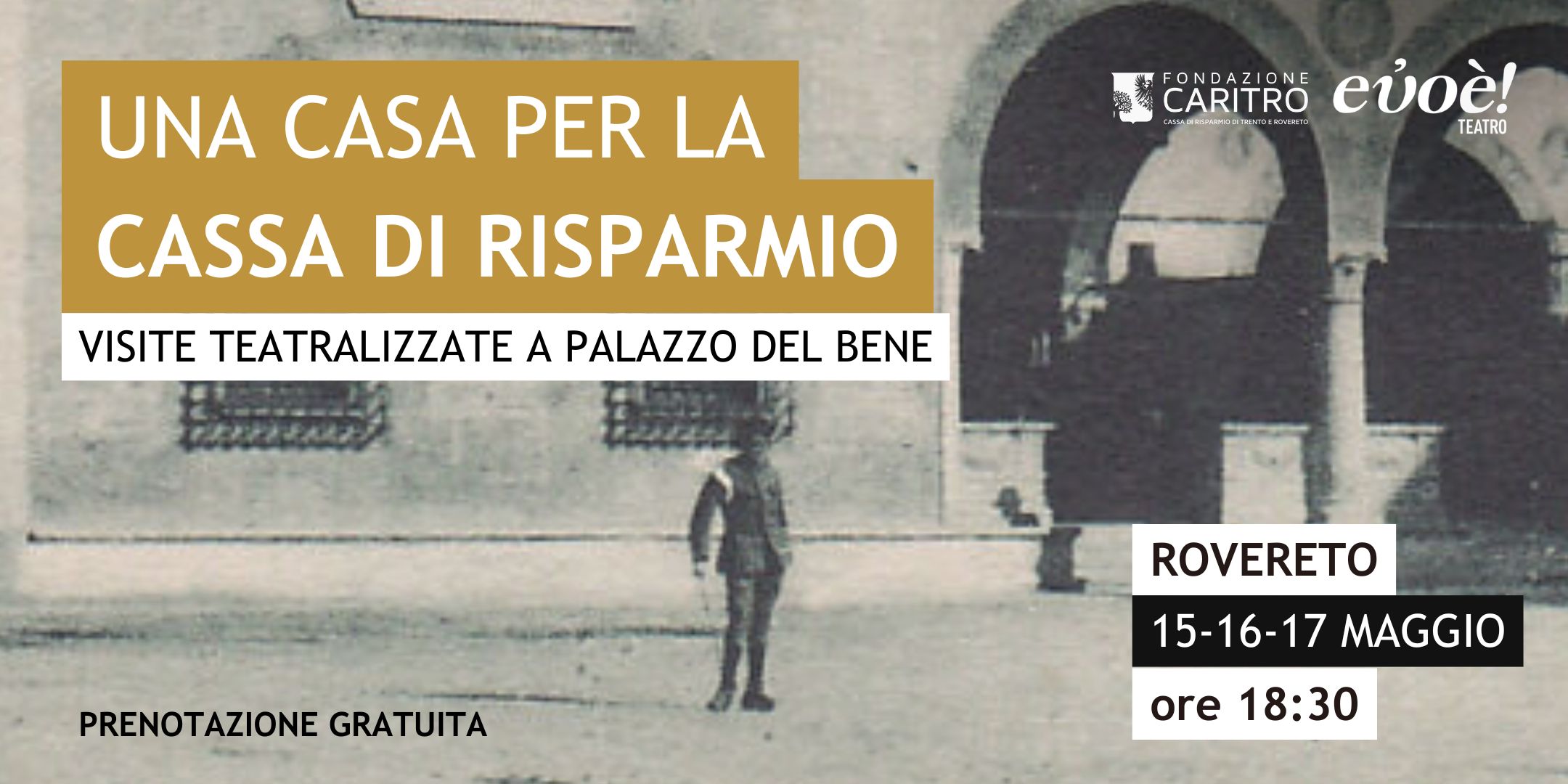 Il 2 ottobre 1906 il rinnovato Palazzo di piazza Rosmini di Rovereto apriva i battenti per la serata inaugurale, dopo 2 anni di restauro. Pochi anni prima, la Cassa di Risparmio di Rovereto lo aveva acquistato infatti dal Comune per insediarci la sua nuova sede: una casa per i risparmiatori di Rovereto, un luogo di incontro, di scambio e di crescita. Rovereto era una città in fermento. Lo spettacolo ripercorre dunque quegli anni vitali e le epoche che hanno segnato la storia del palazzo. Così accompagnato dal presidente Plancher che tagliò il nastro dell’inaugurazione del 1906, il pubblico potrà entrare nel Palazzo che fu dei Del Bene e dei Conti d’Arco. Attraverso le parole degli attori e le suggestioni della musica, viaggeremo nel tempo per scoprire famiglie e storie che hanno abitato questo luogo.